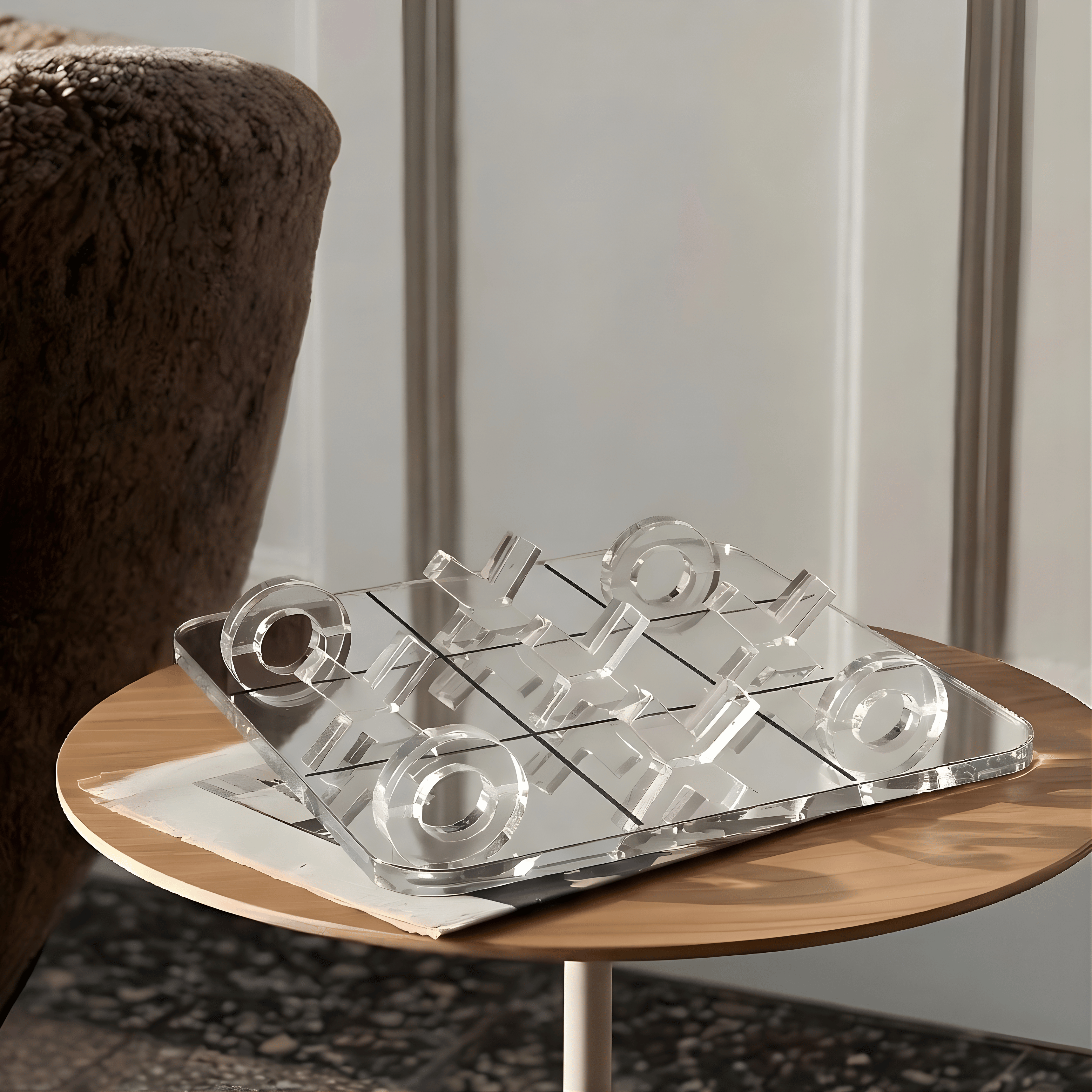 A timeless game reimagined through modern design. Frost Tic Tac Toe transforms the familiar childhood classic into a sleek decorative object that blends playfulness with refined minimalism.