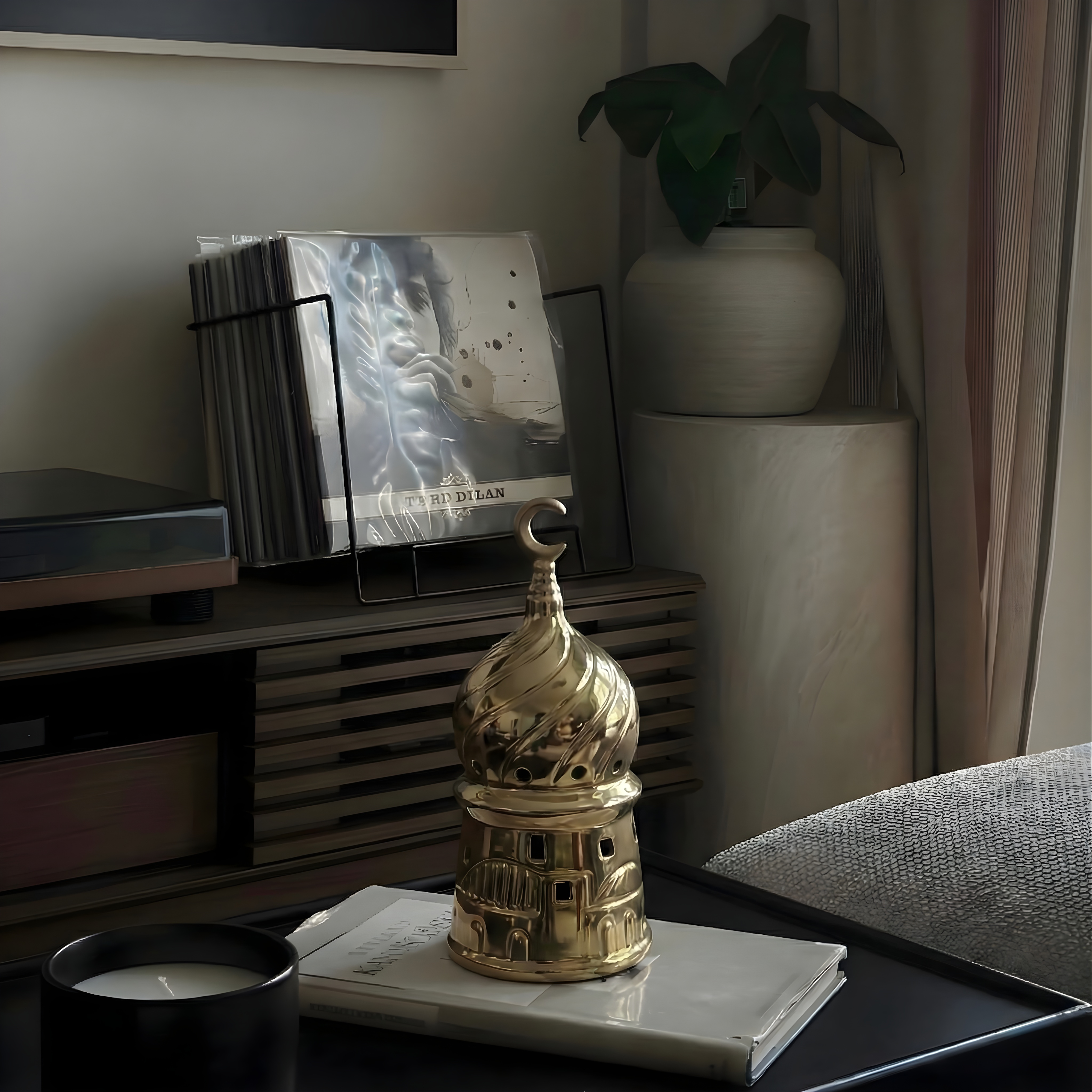 This lantern is ideal as a standalone decorative piece on consoles, shelves, or dining tables. Its architectural form pairs well with neutral palettes, natural textures, and soft ambient lighting. Whether displayed alone or within a curated arrangement, it adds a quiet Ramadan-inspired presence to the space.