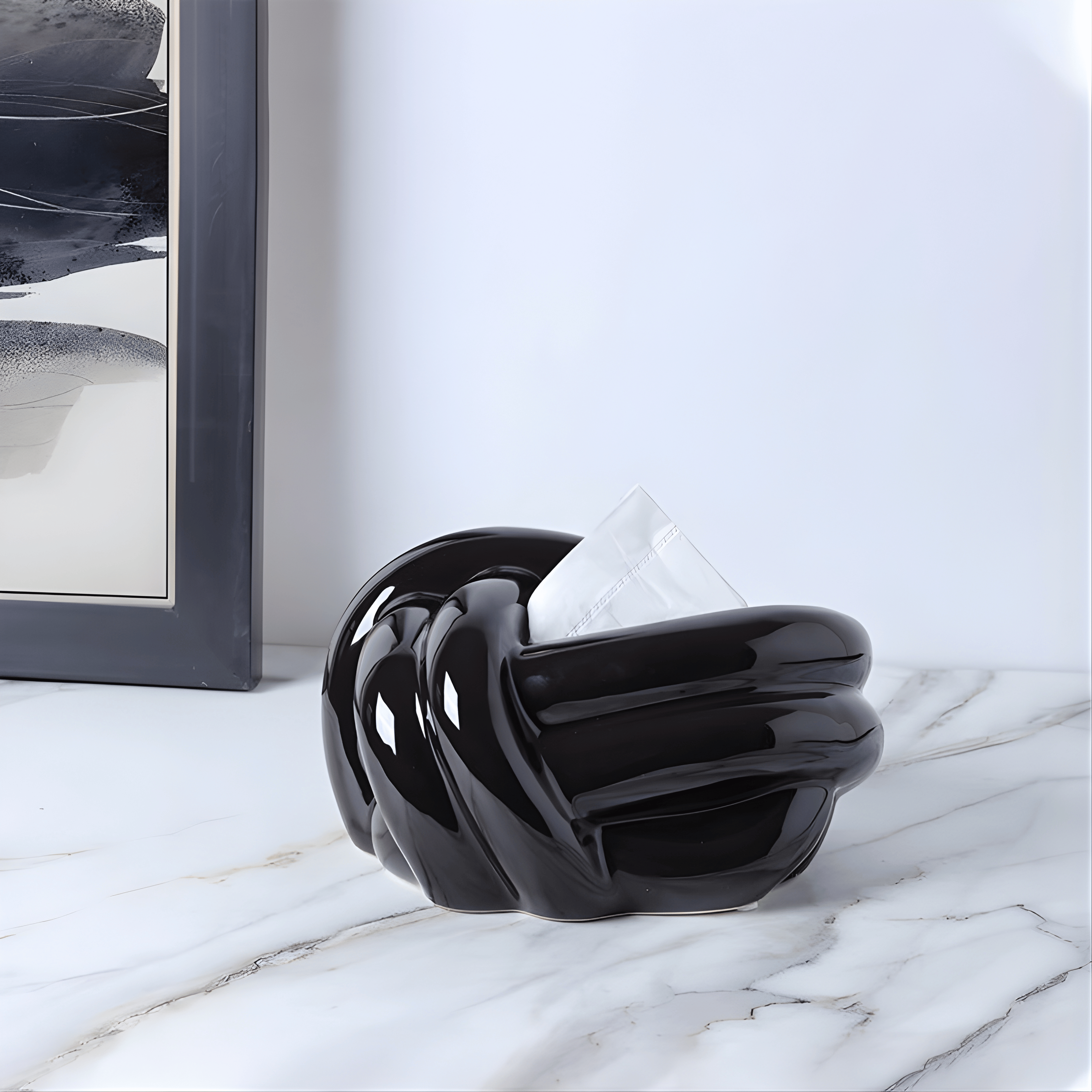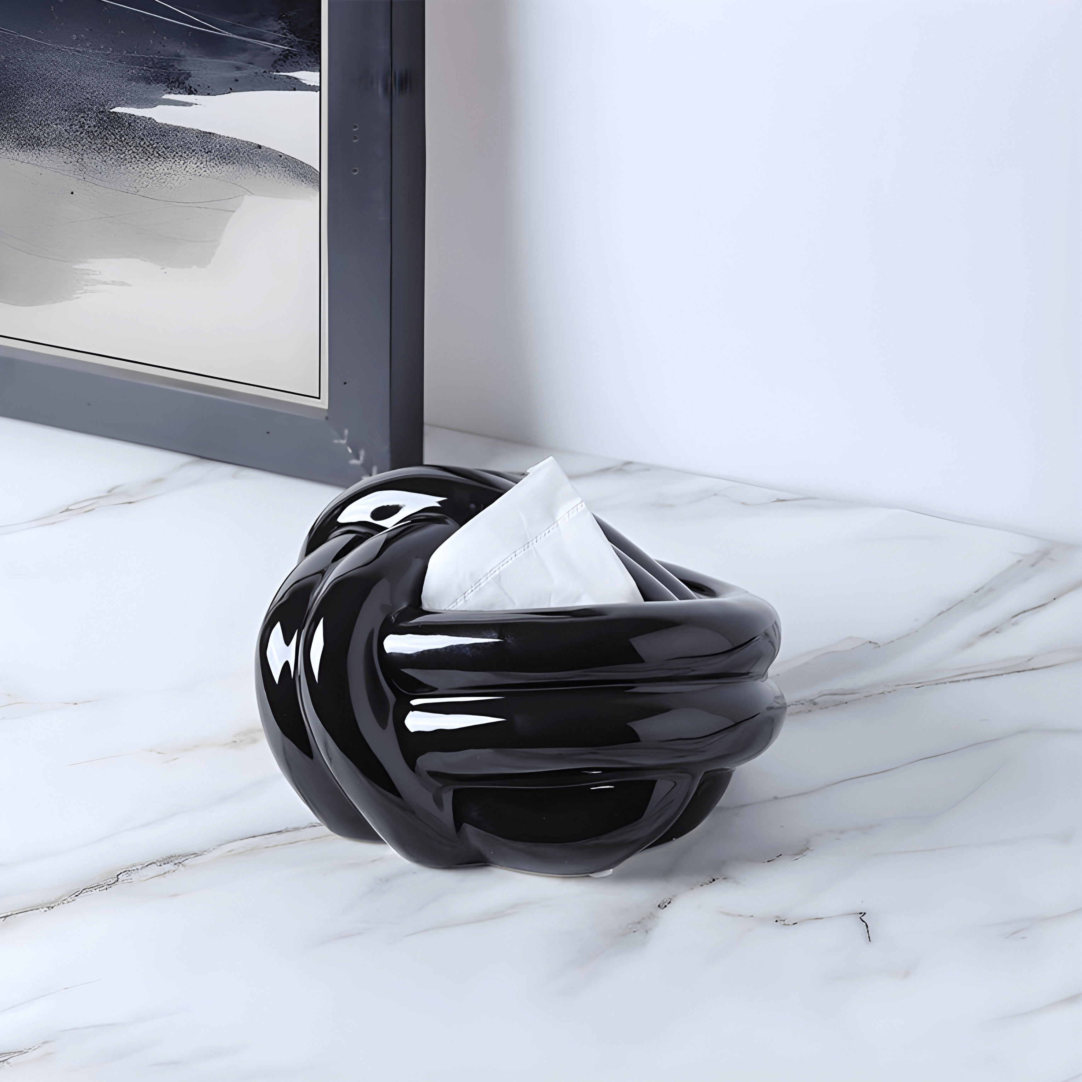 A fluid metallic form frozen mid-motion — the Infinity Knot Tissue Sculpture redefines functionality through art. Inspired by the symbolism of continuity and flow, its intertwined curves create a dynamic visual rhythm from every angle.
