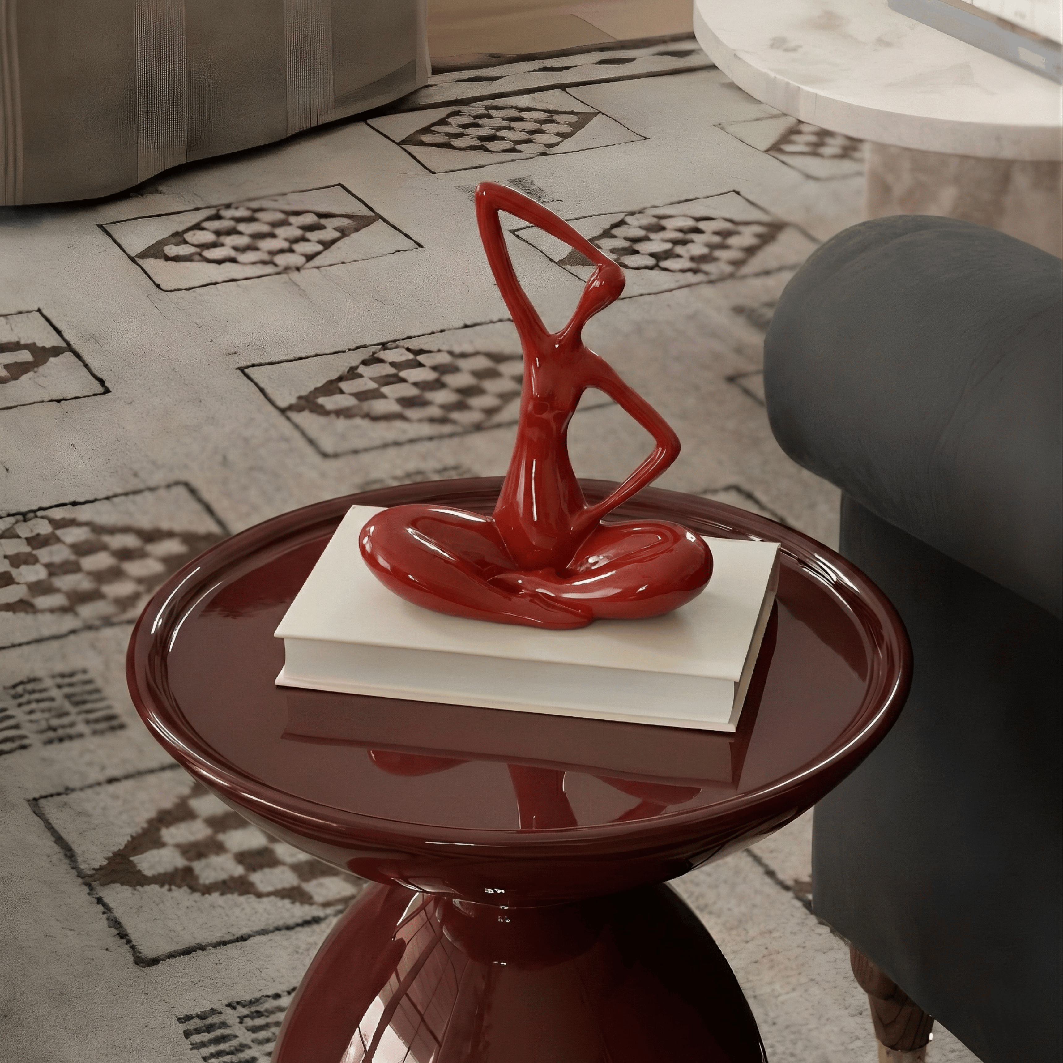 A fluid interpretation of the human form, captured in a bold high-gloss red finish. The elongated silhouette and open negative spaces create a sense of movement and elegance, while the grounded seated posture adds calm balance. Minimal yet expressive, it transforms abstraction into emotion.