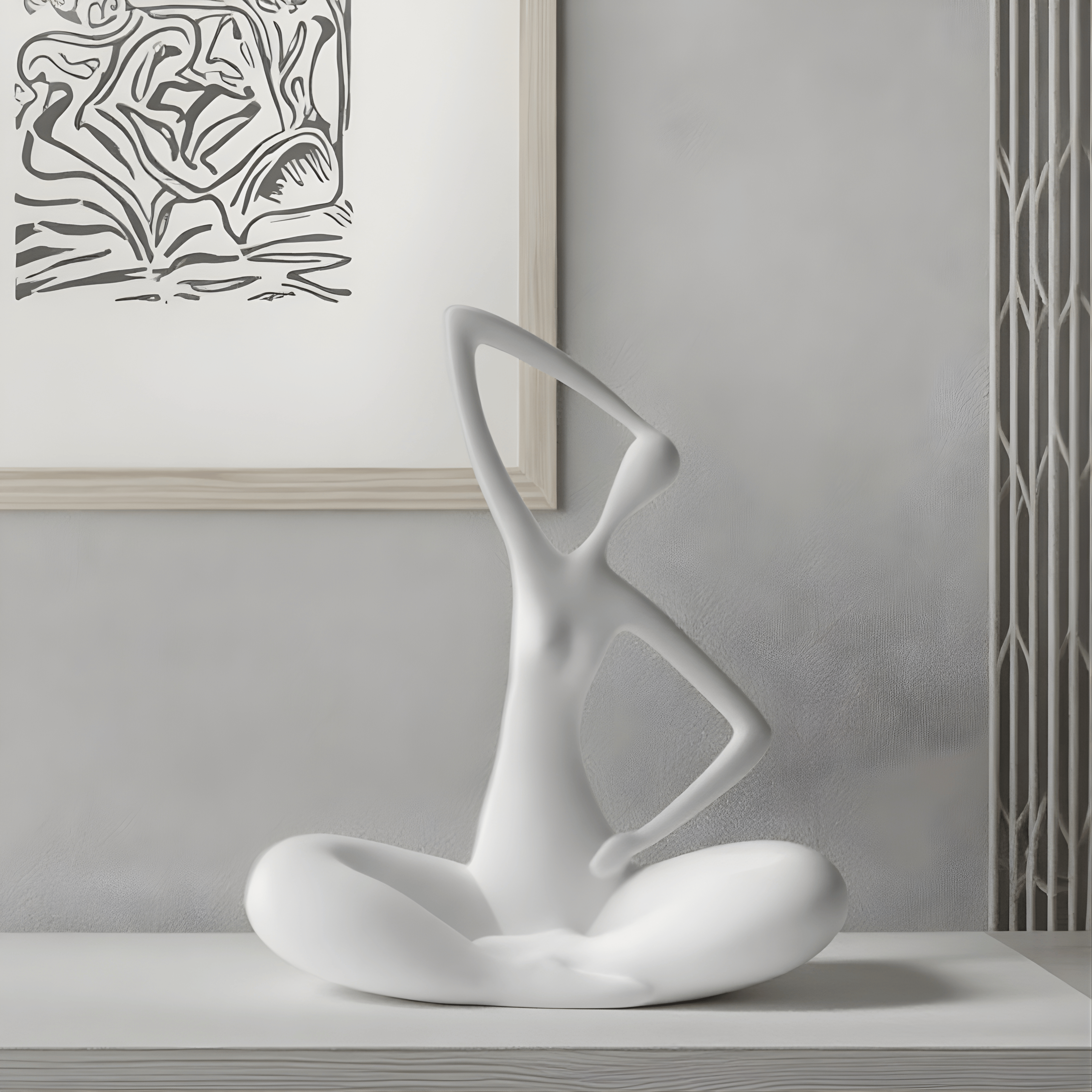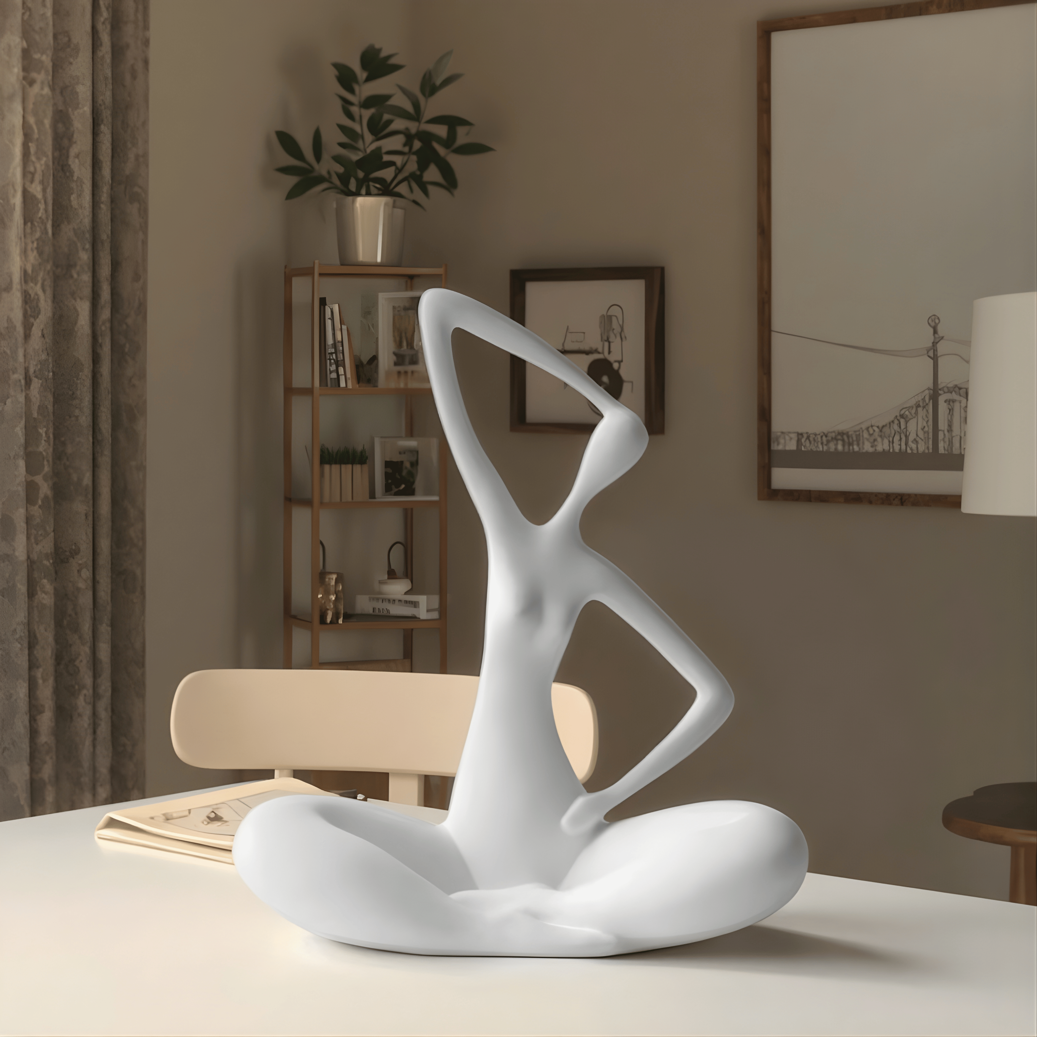 A fluid interpretation of the human form, captured in a bold high-gloss red finish. The elongated silhouette and open negative spaces create a sense of movement and elegance, while the grounded seated posture adds calm balance. Minimal yet expressive, it transforms abstraction into emotion.