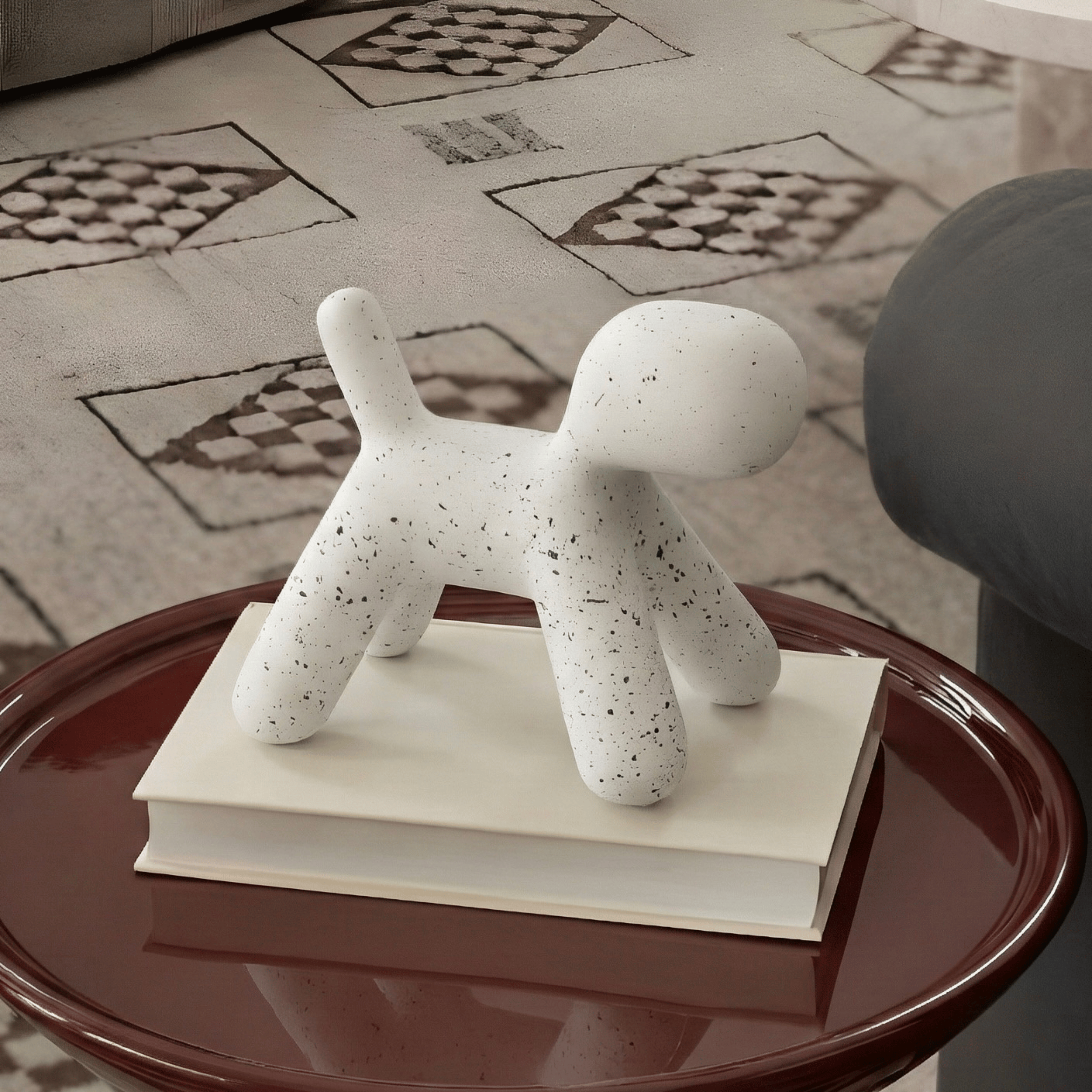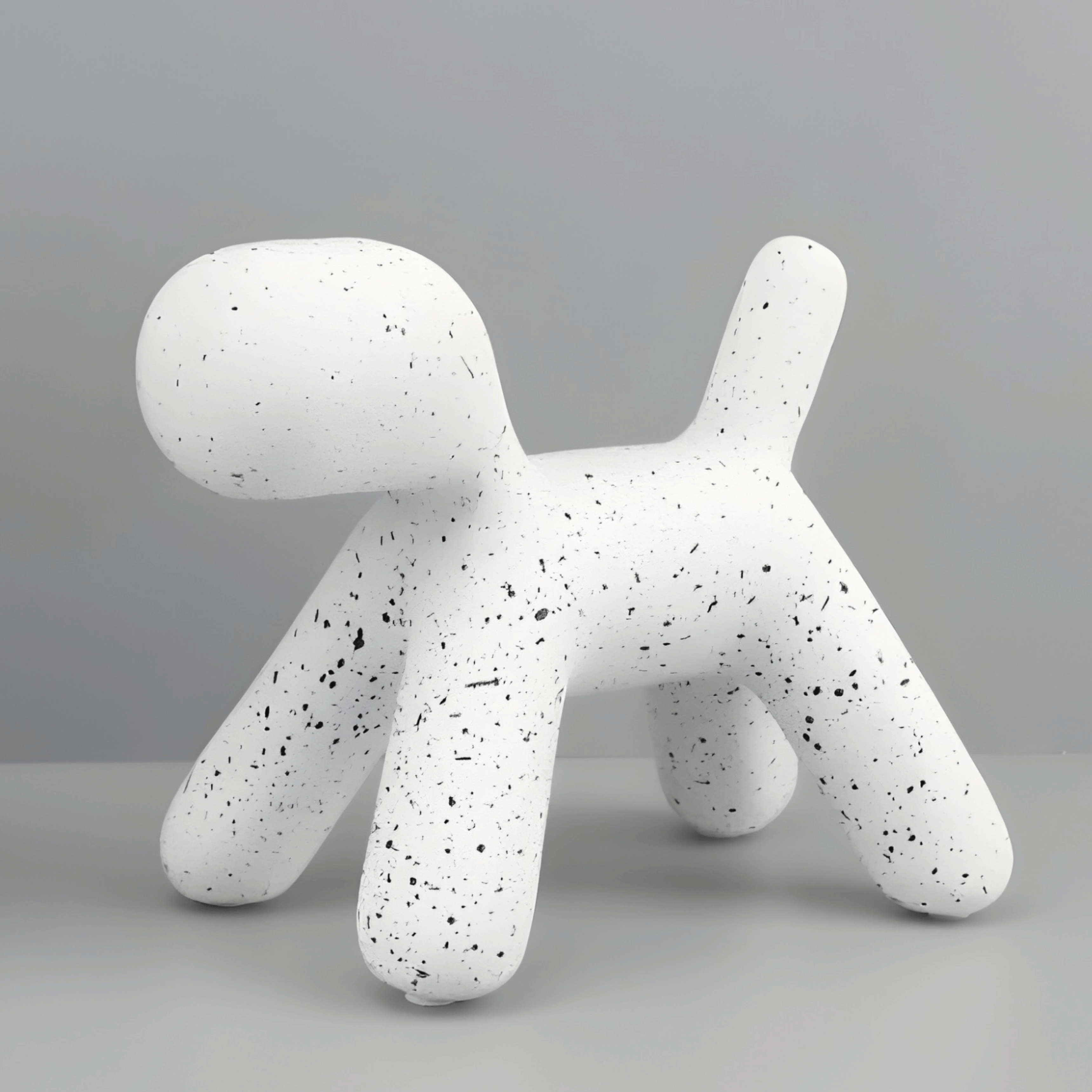 These contemporary balloon dog sculptures reinterpret a playful classic through a refined, minimalist lens. The smooth, rounded silhouettes maintain the iconic inflated form, while the speckled matte finishes introduce a modern, artistic texture. The bold black version delivers strong visual impact, while the soft white counterpart offers subtle elegance β together creating a balanced contrast that feels both sculptural and design-forward.