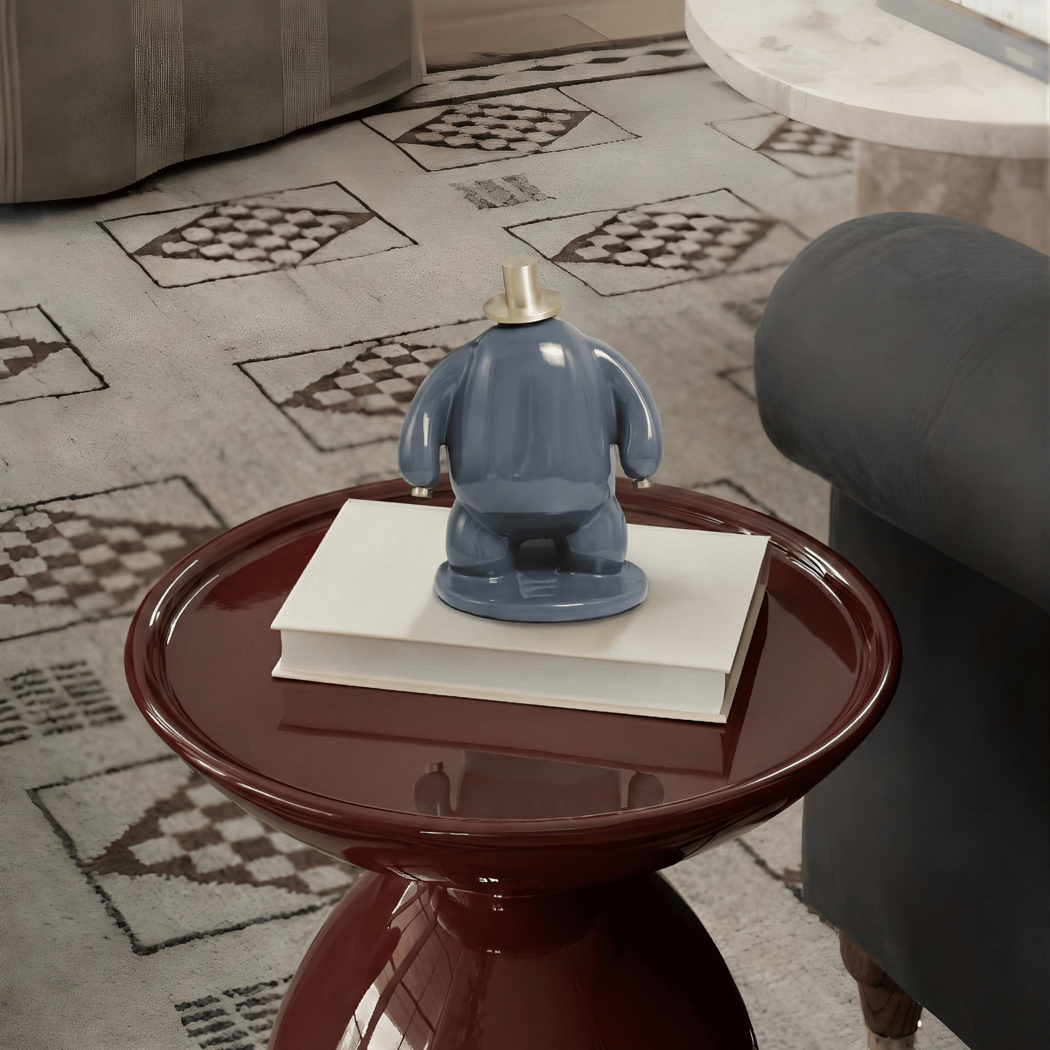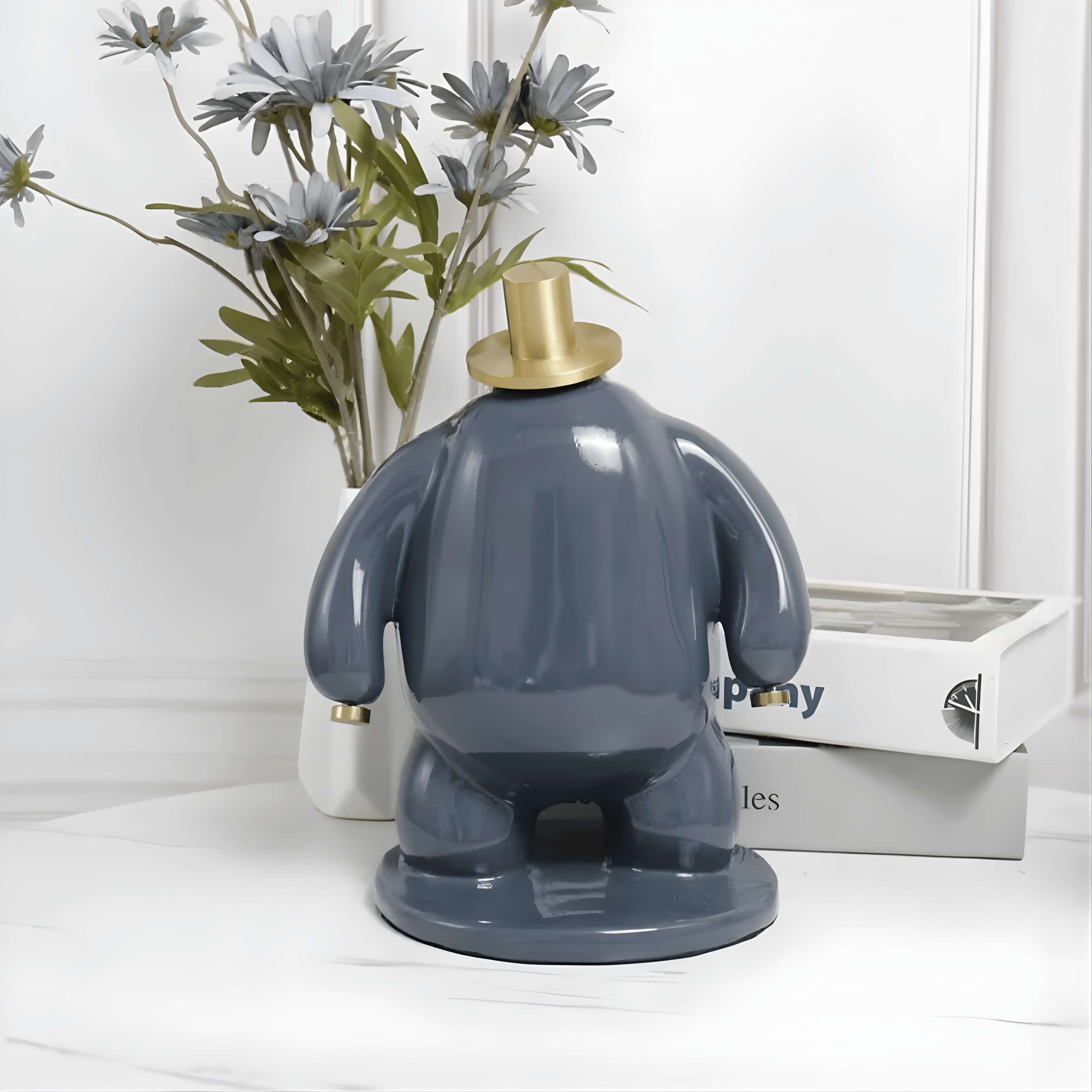 Crafted from high-quality resin with a smooth matte finish, the body offers a velvety texture that enhances its minimalist aesthetic. The brushed gold metal accents — including the circular top and wrist details — feature a subtle radial texture that reflects light softly without overpowering the design. The stable base ensures durability and proper weight distribution, making it both decorative and functional.
