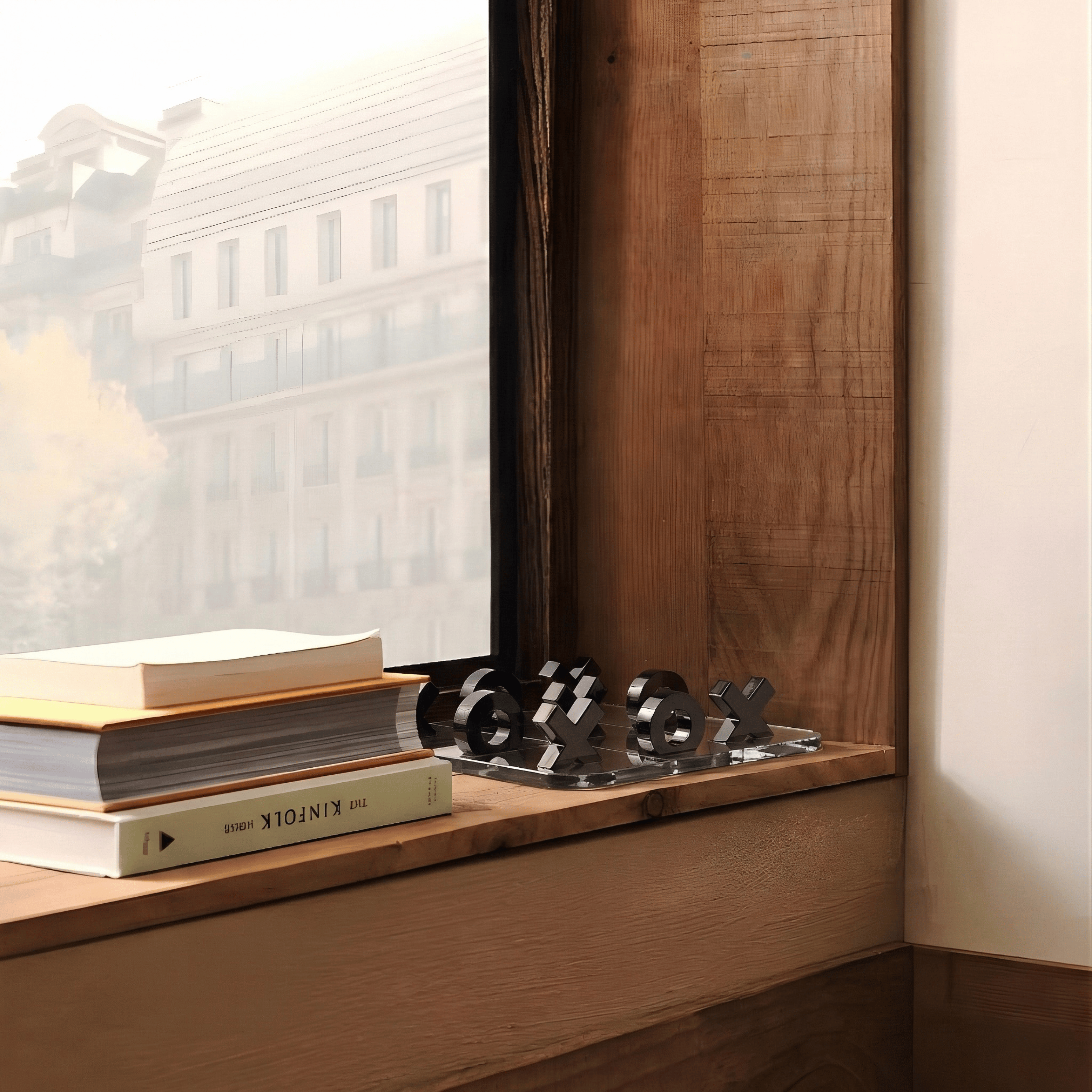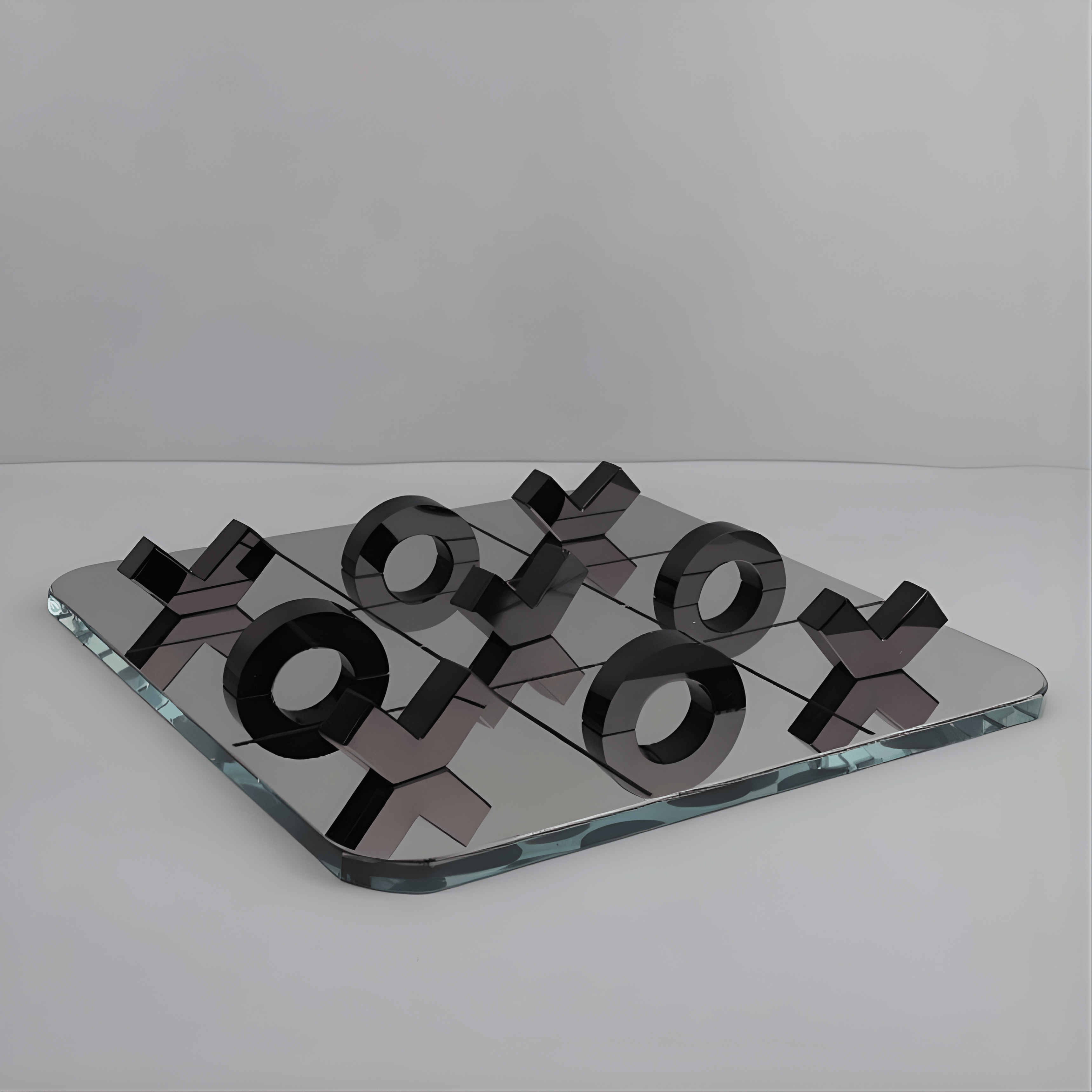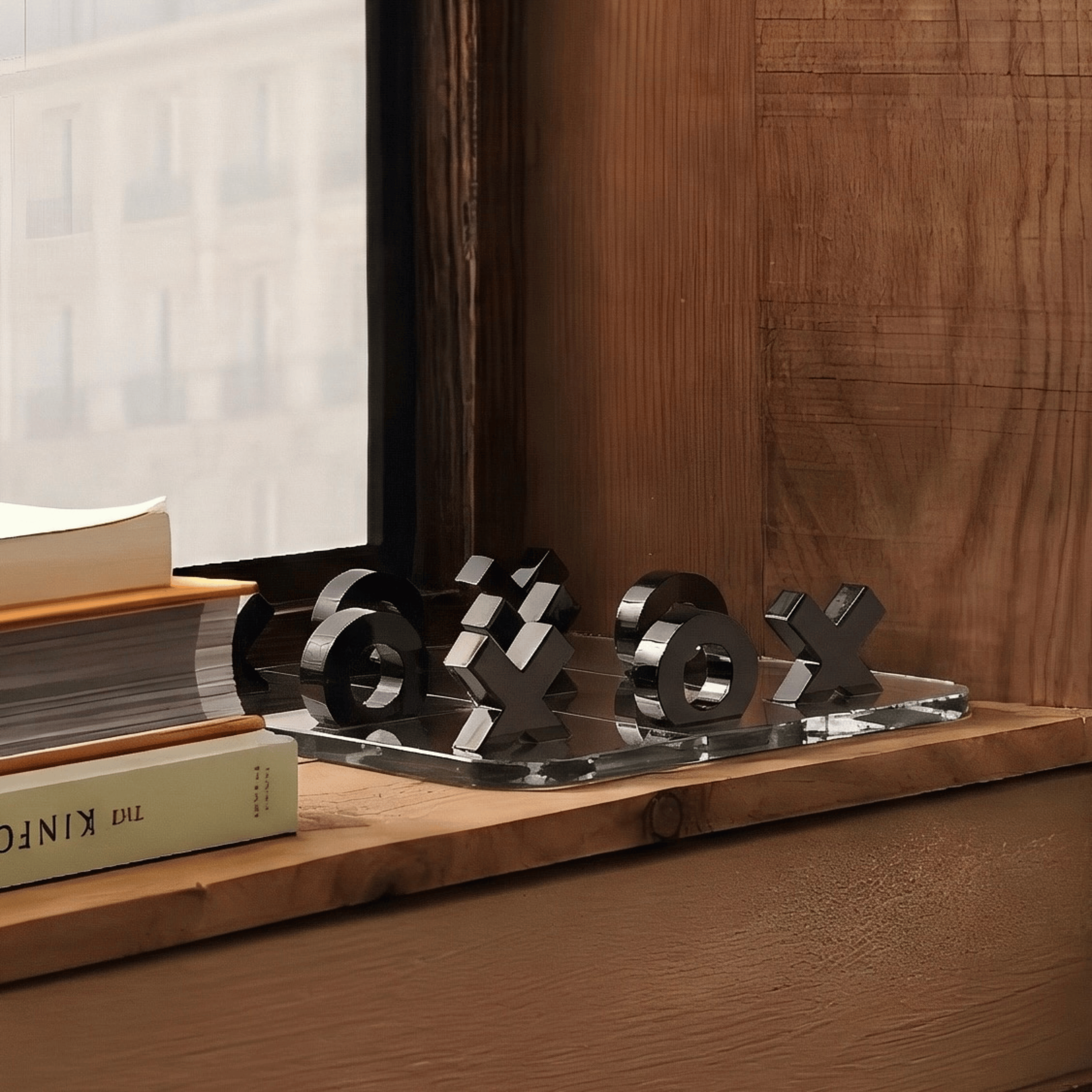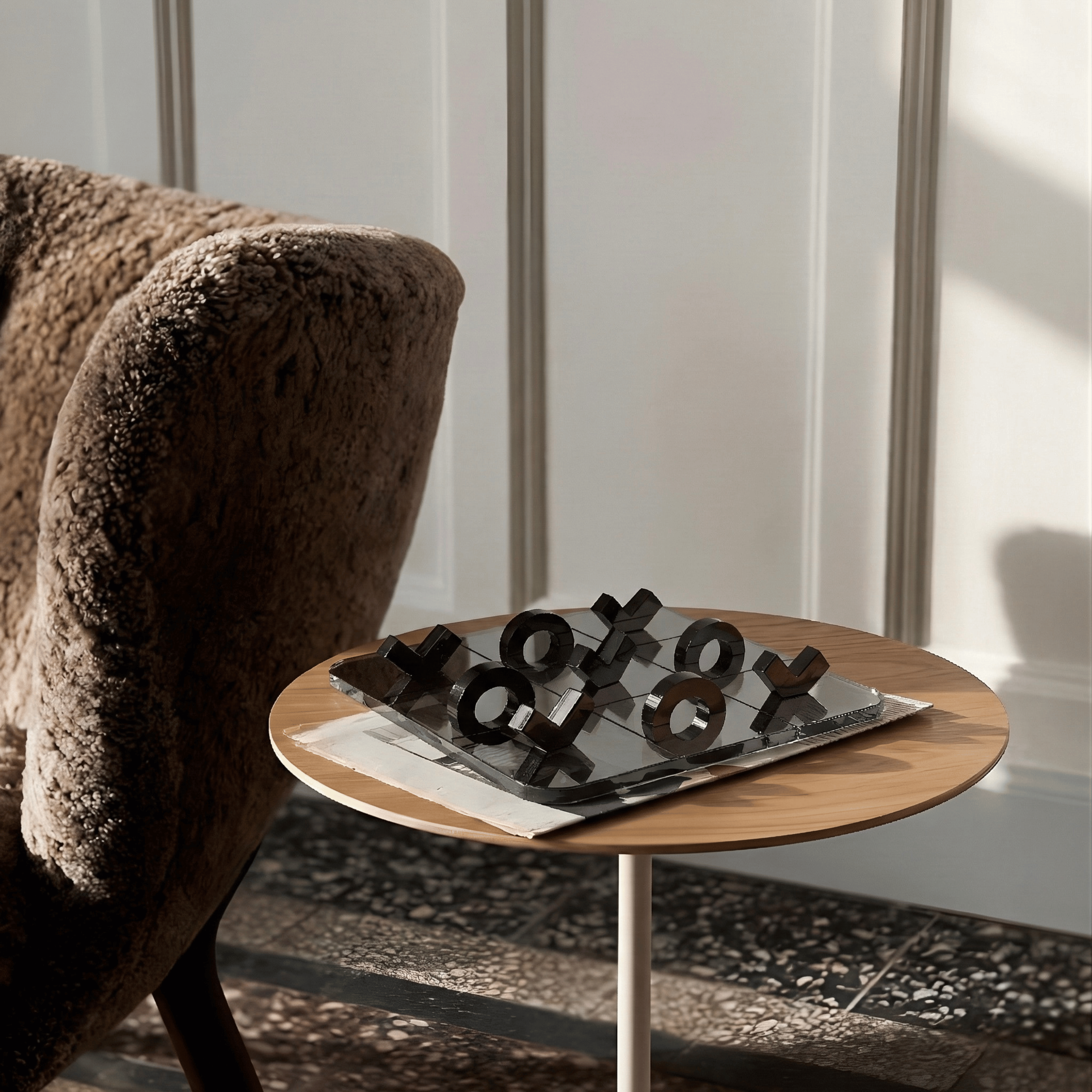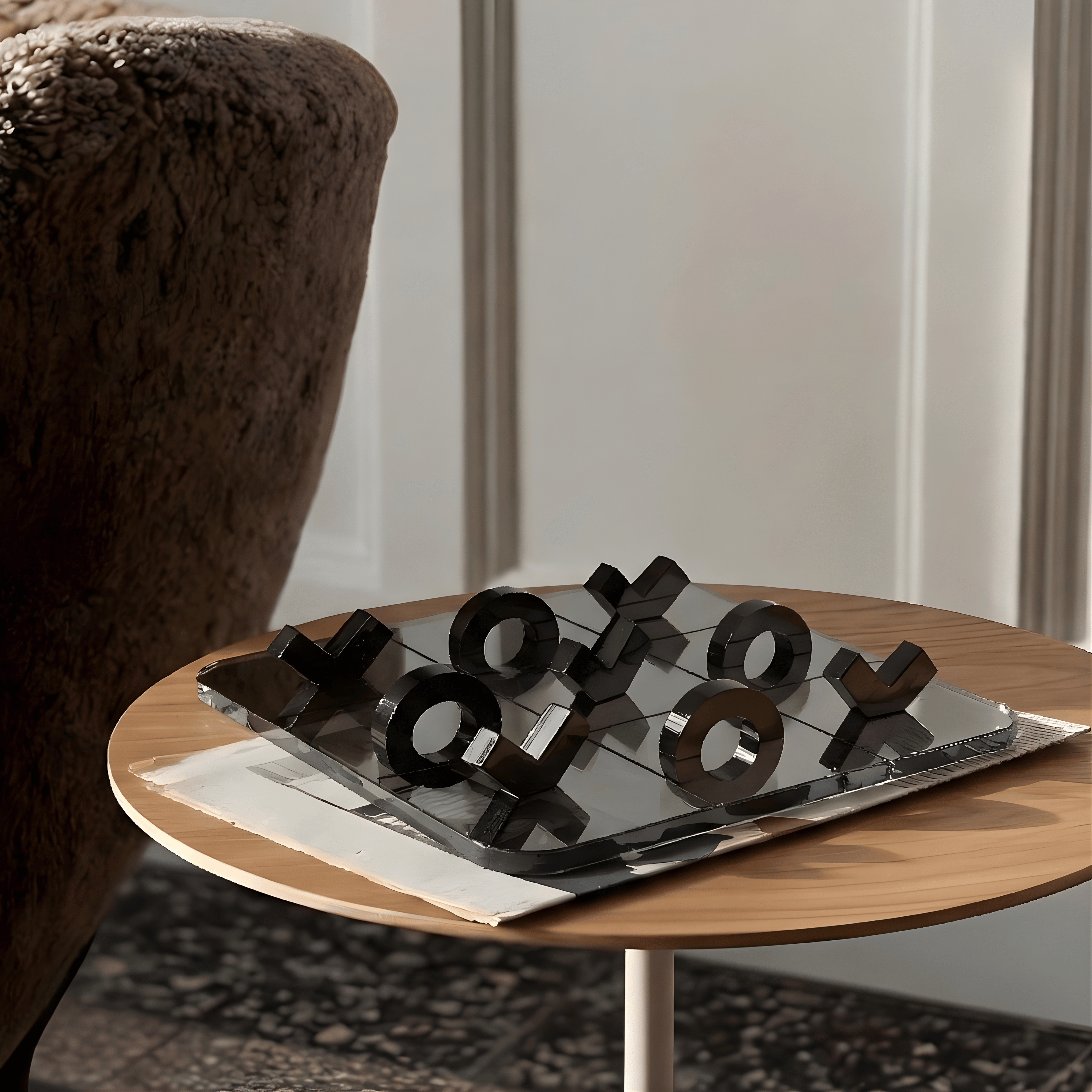 A timeless game reimagined through modern design. Obsidian Tic Tac Toe transforms the familiar childhood classic into a sleek decorative object that blends playfulness with refined minimalism.