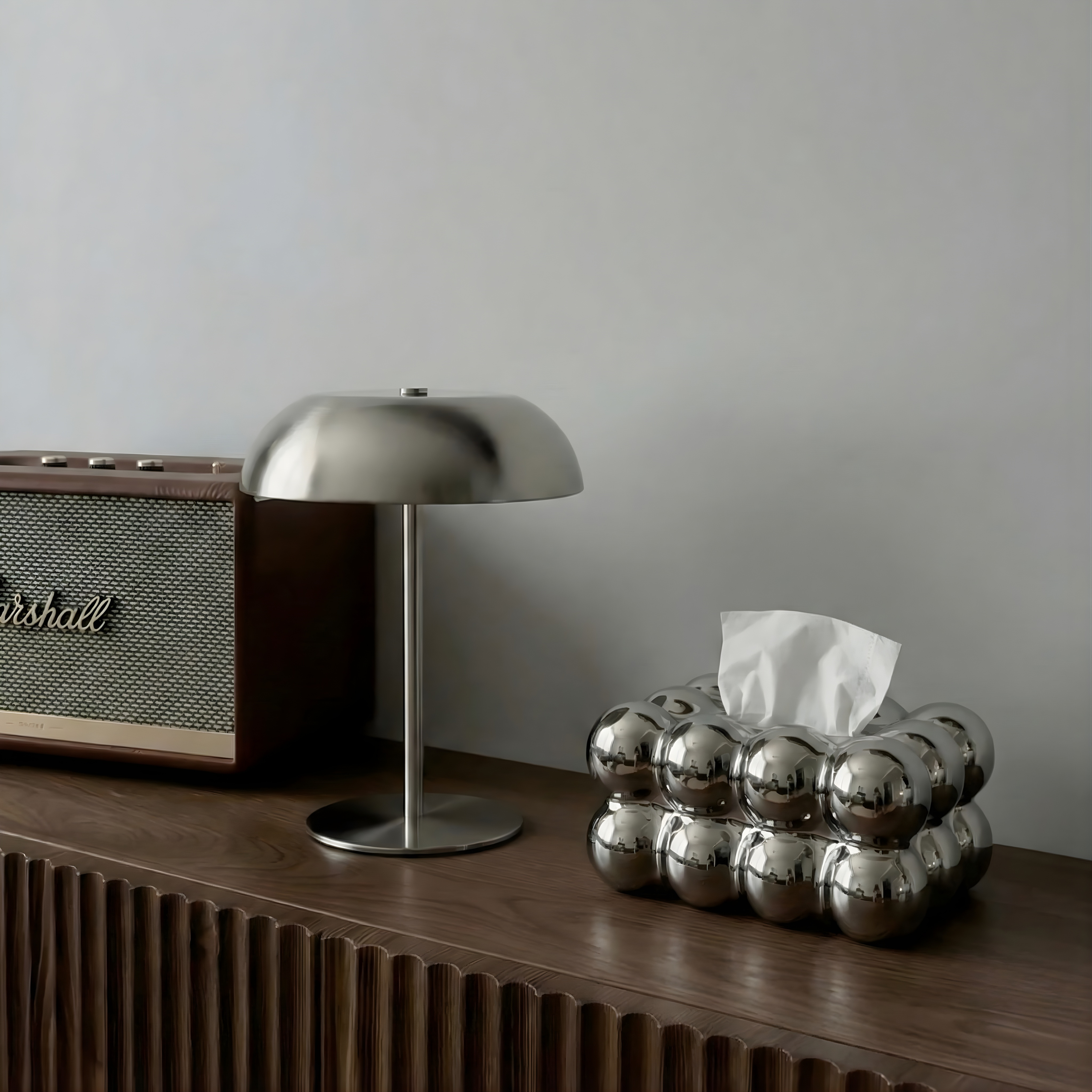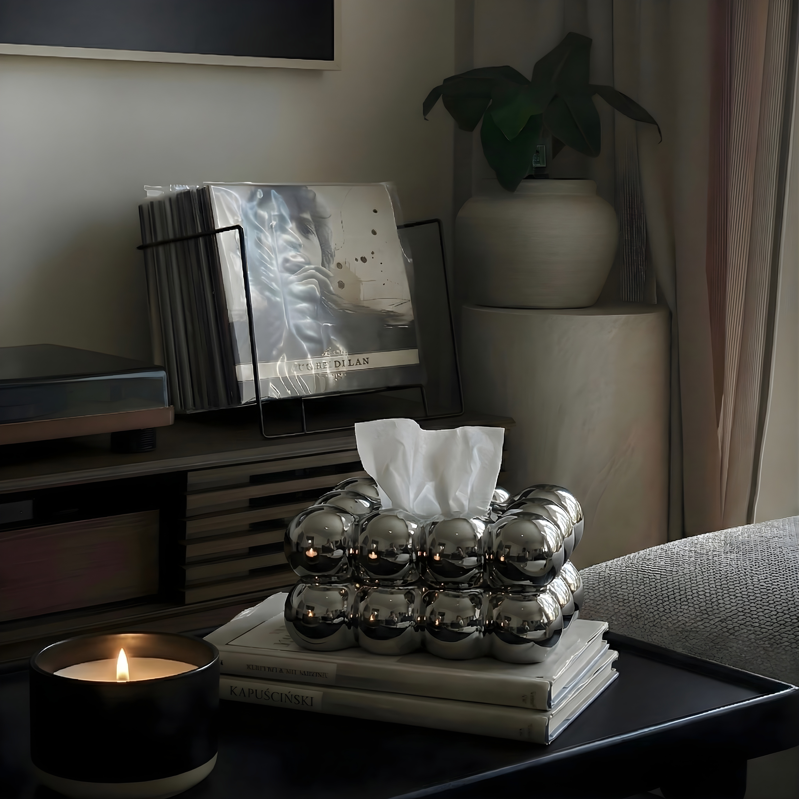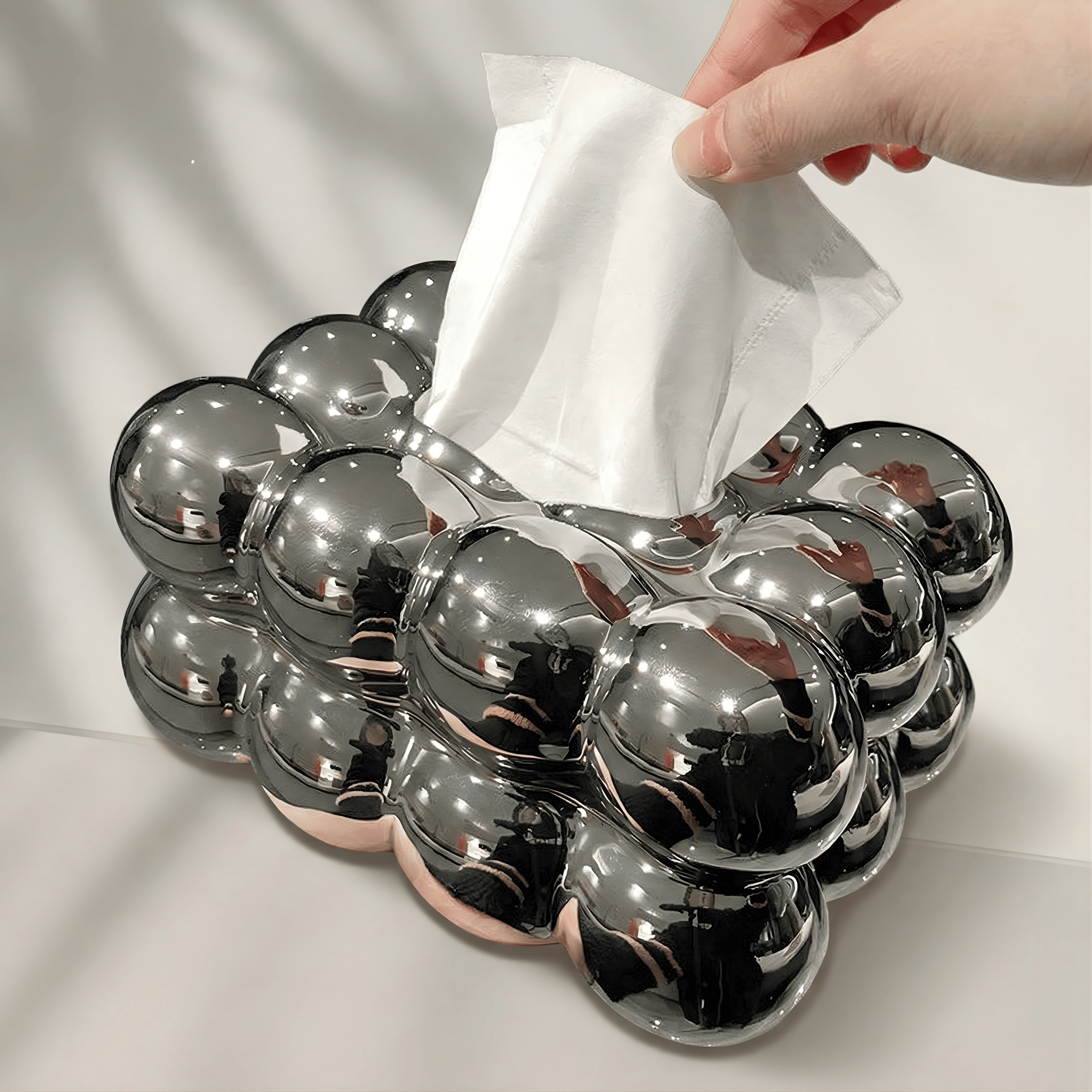 Sculpted in a compact, cloud-like form, this tissue box transforms an everyday object into a bold decorative statement. The rounded geometry creates a soft visual rhythm, while the mirrored surface adds depth and a sense of modern luxury without relying on ornamentation.