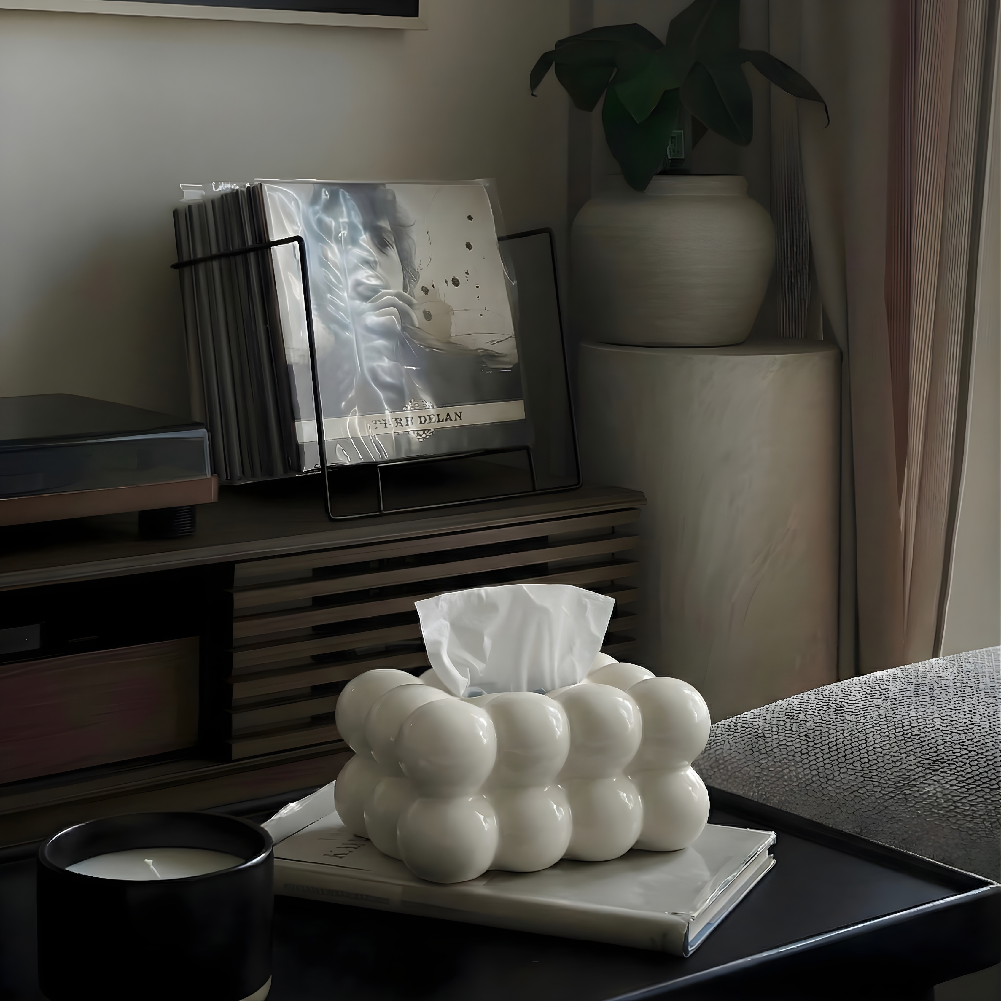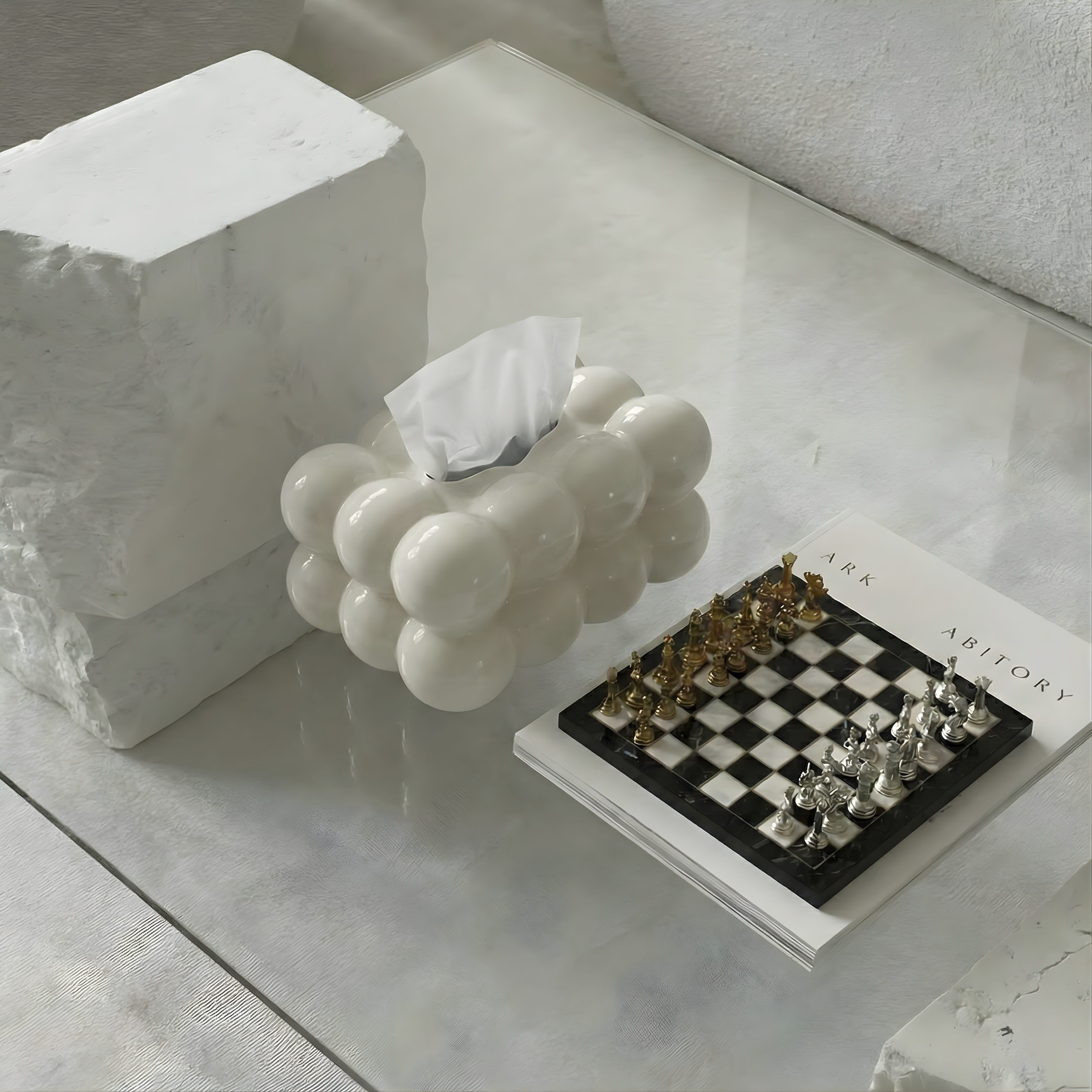 Sculpted in a compact, cloud-like form, this tissue box transforms an everyday object into a bold decorative statement. The rounded geometry creates a soft visual rhythm, while the mirrored surface adds depth and a sense of modern luxury without relying on ornamentation.