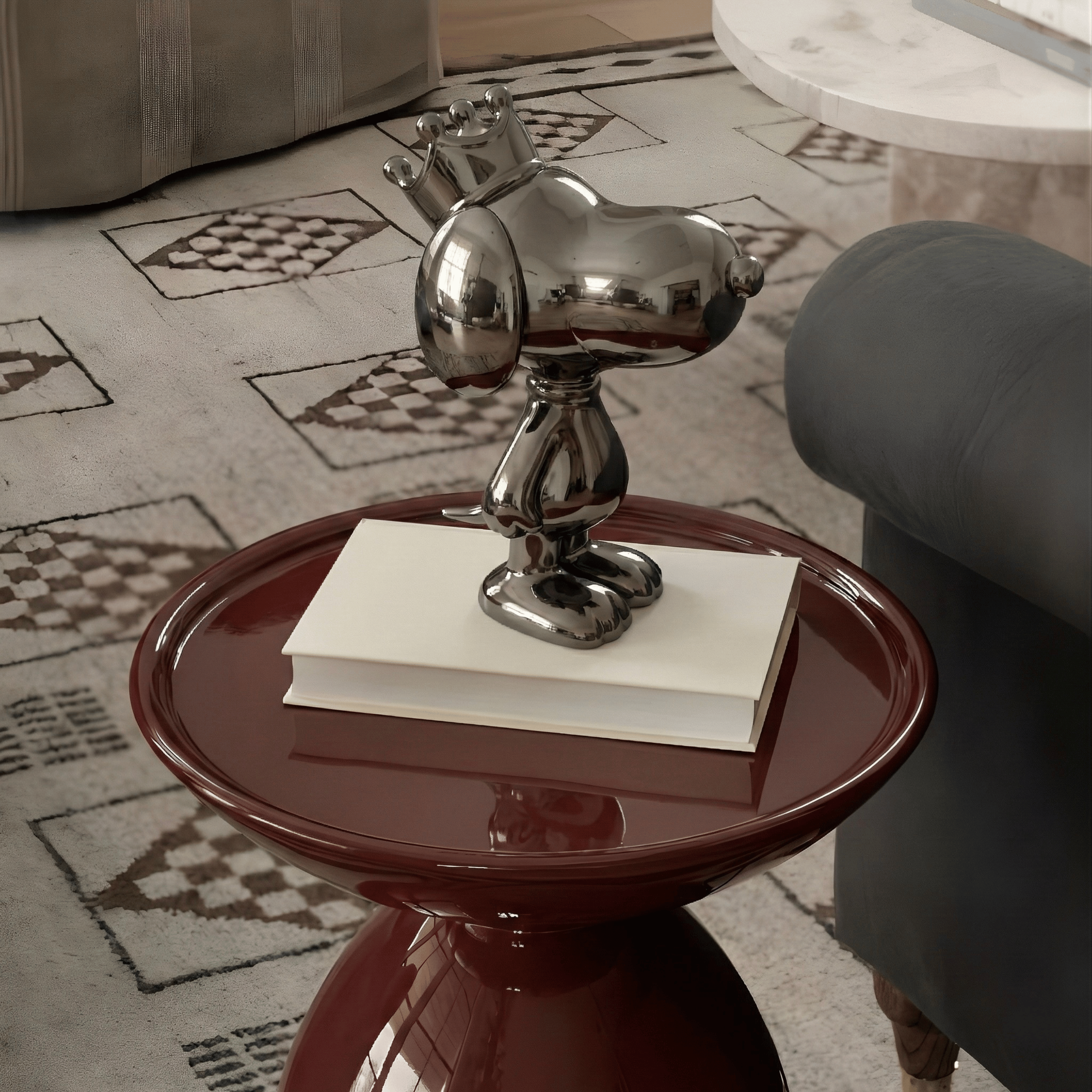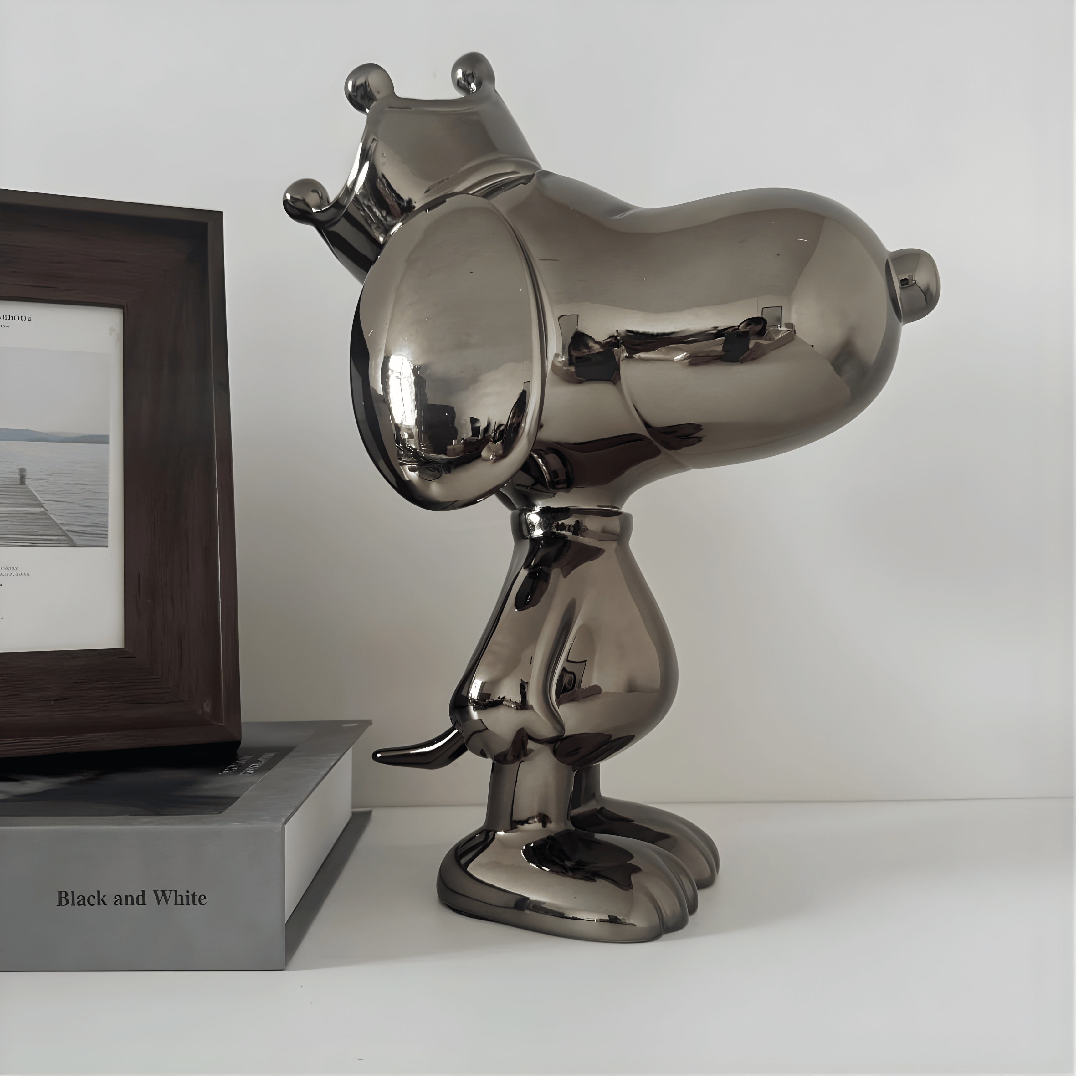 Perfect for modern, pop-art, luxury, or contemporary interiors. This sculpture works beautifully on bookshelves, console tables, coffee tables, or office desks. Its reflective surface interacts dynamically with light, making it ideal for well-lit spaces. Pair it with neutral tones for contrast or alongside metallic accents for a cohesive, high-end aesthetic.