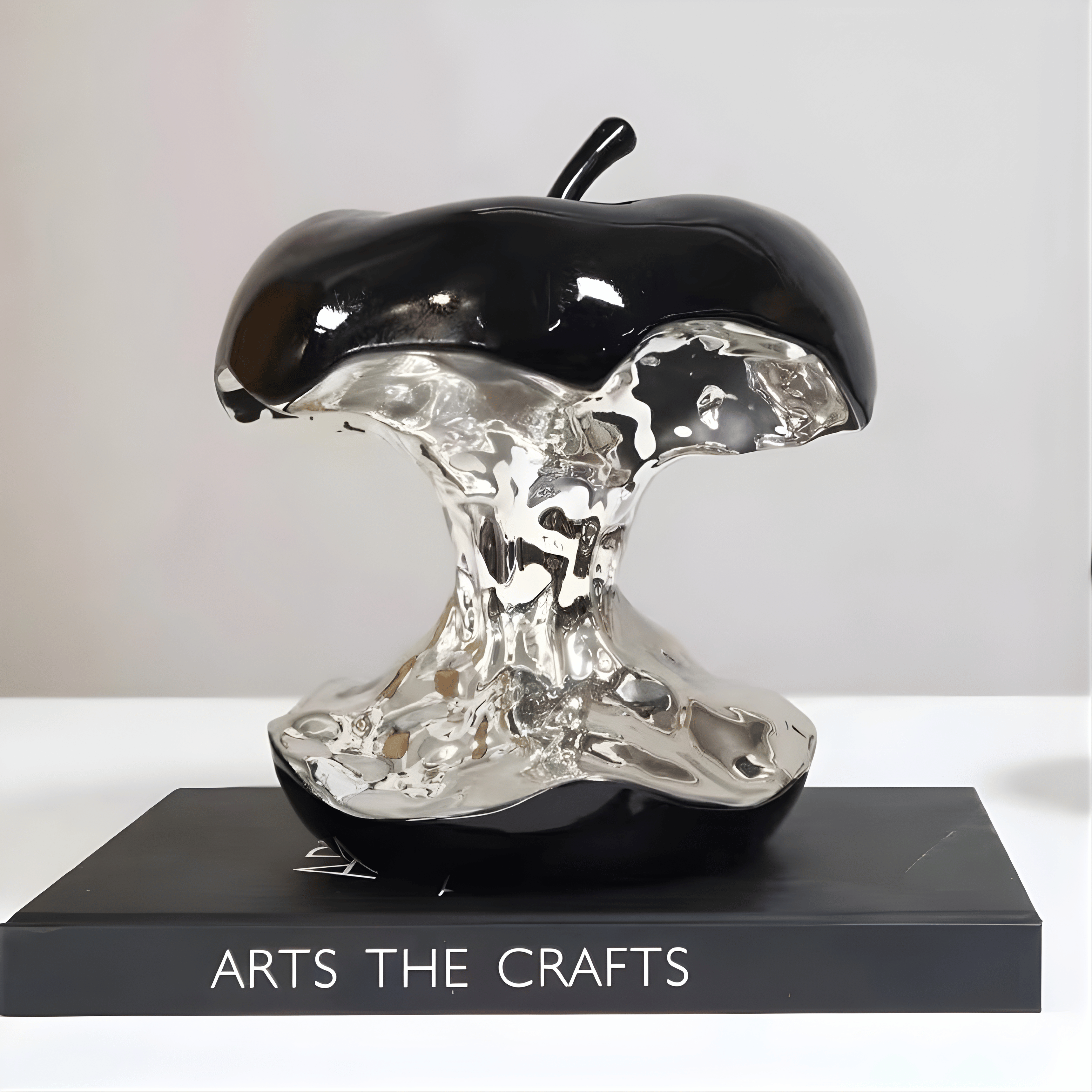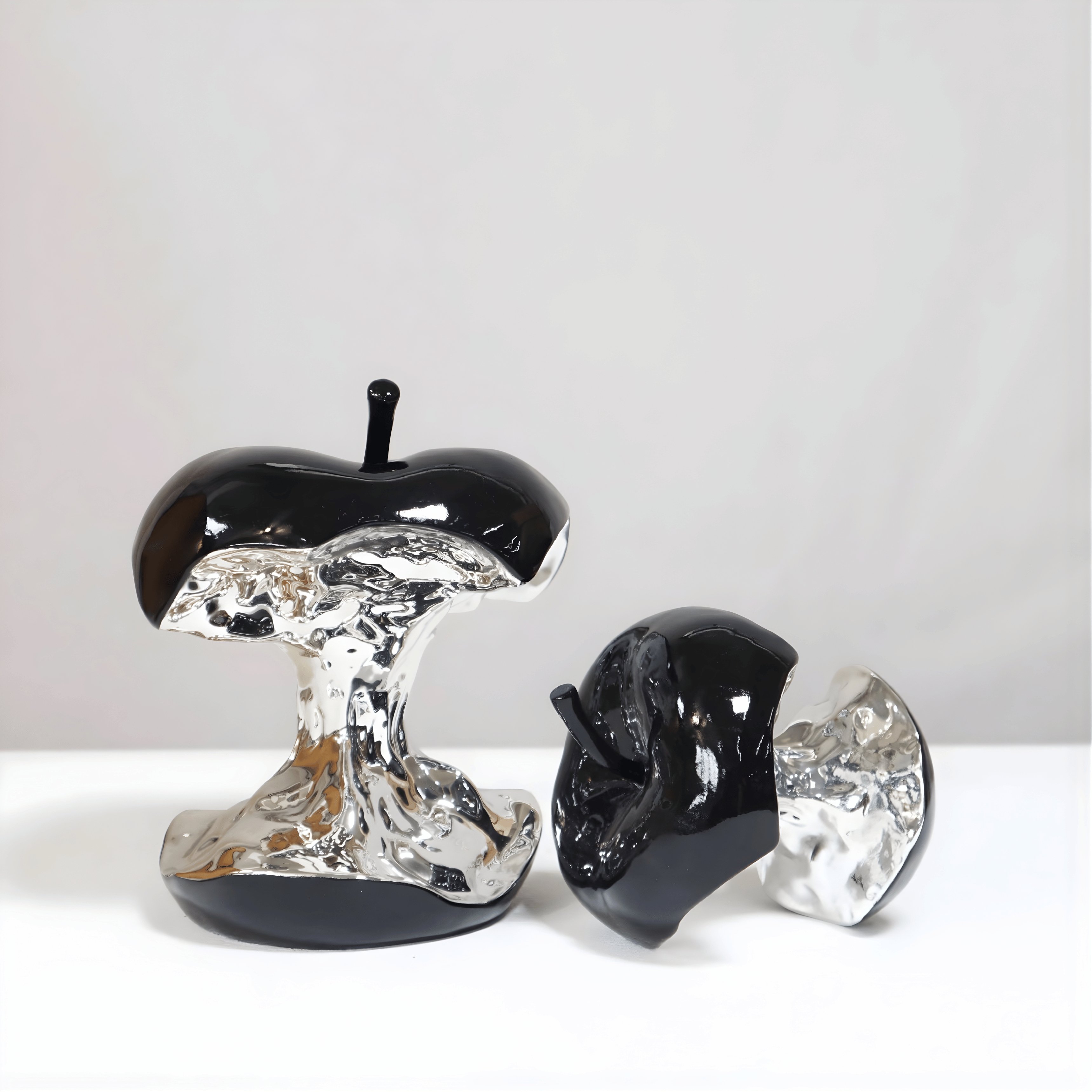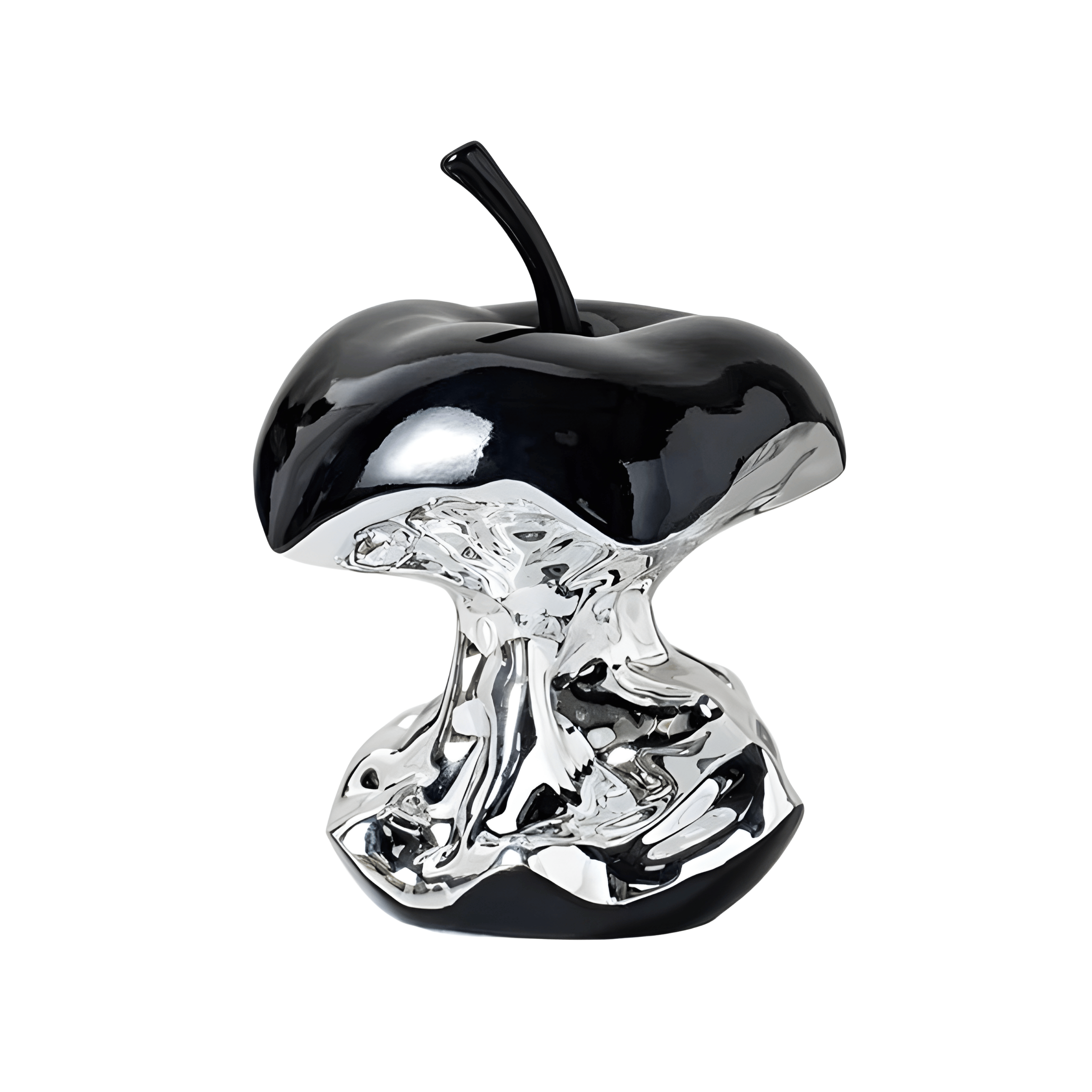 A bold reinterpretation of a familiar form, this sculptural apple blends glossy crimson curves with a liquid-chrome core. The contrast between the smooth enamel finish and the mirrored metallic texture creates depth, movement, and a striking contemporary presence.