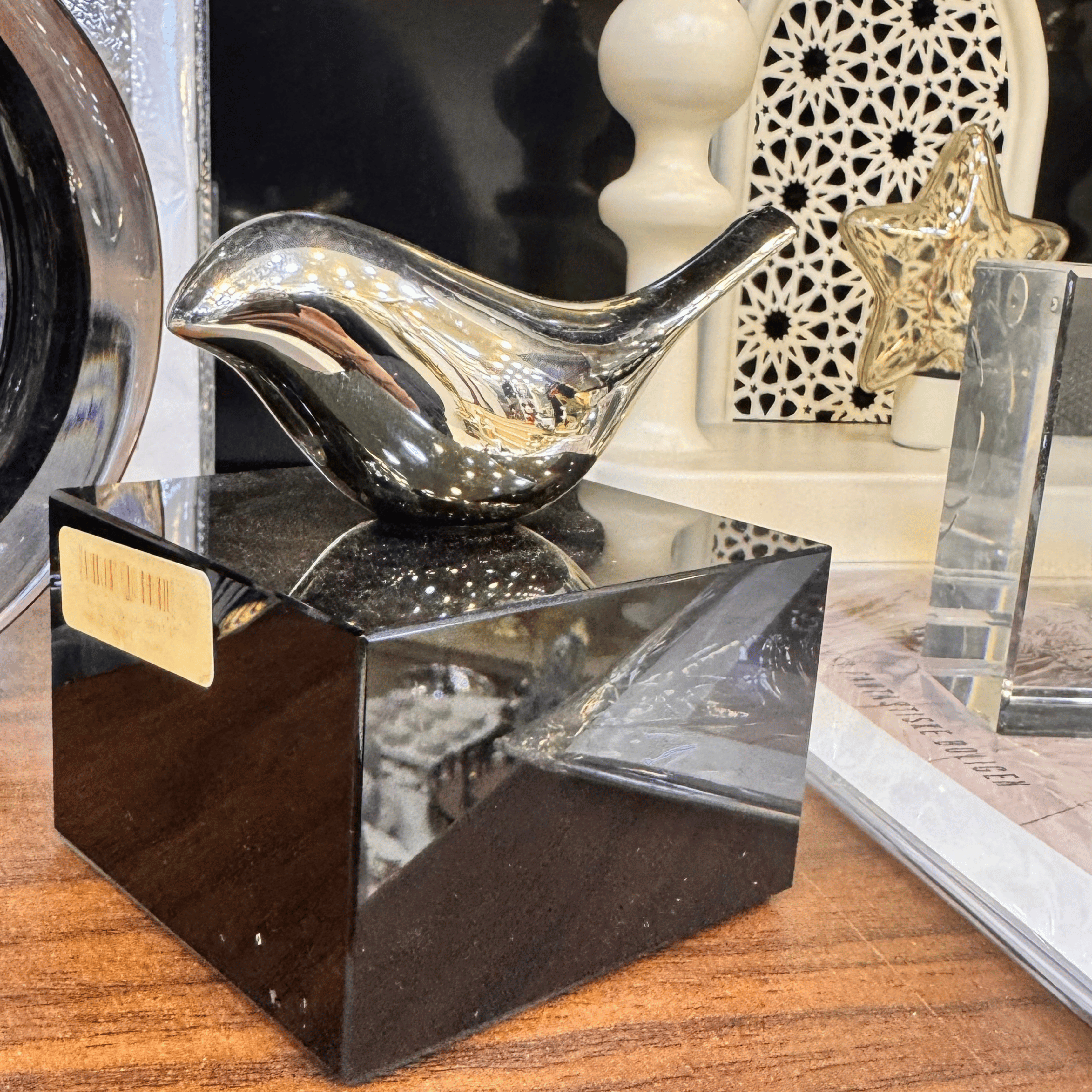 A sculpted bird resting in perfect balance — minimal in detail, powerful in presence. The Silver Whisper Bird captures the elegance of pause — that quiet second before flight.