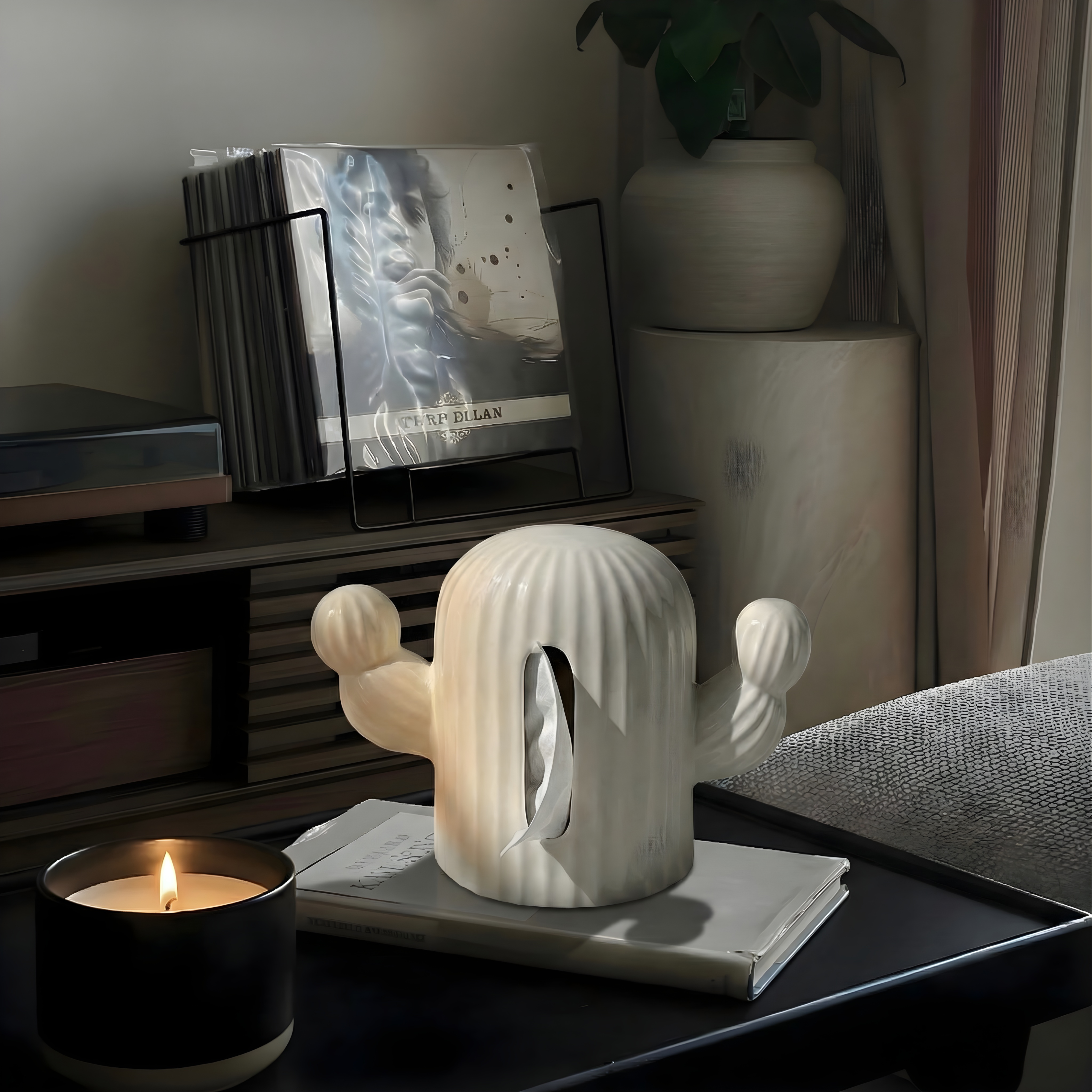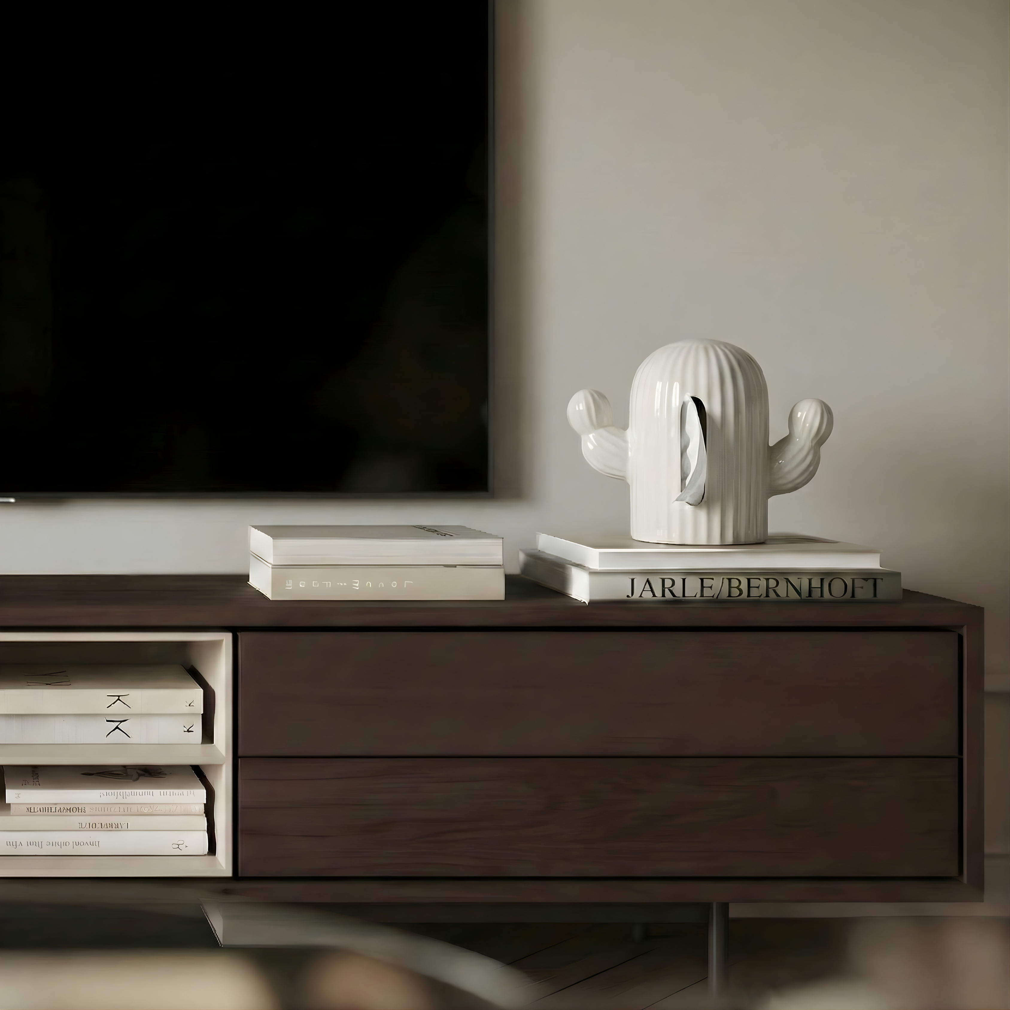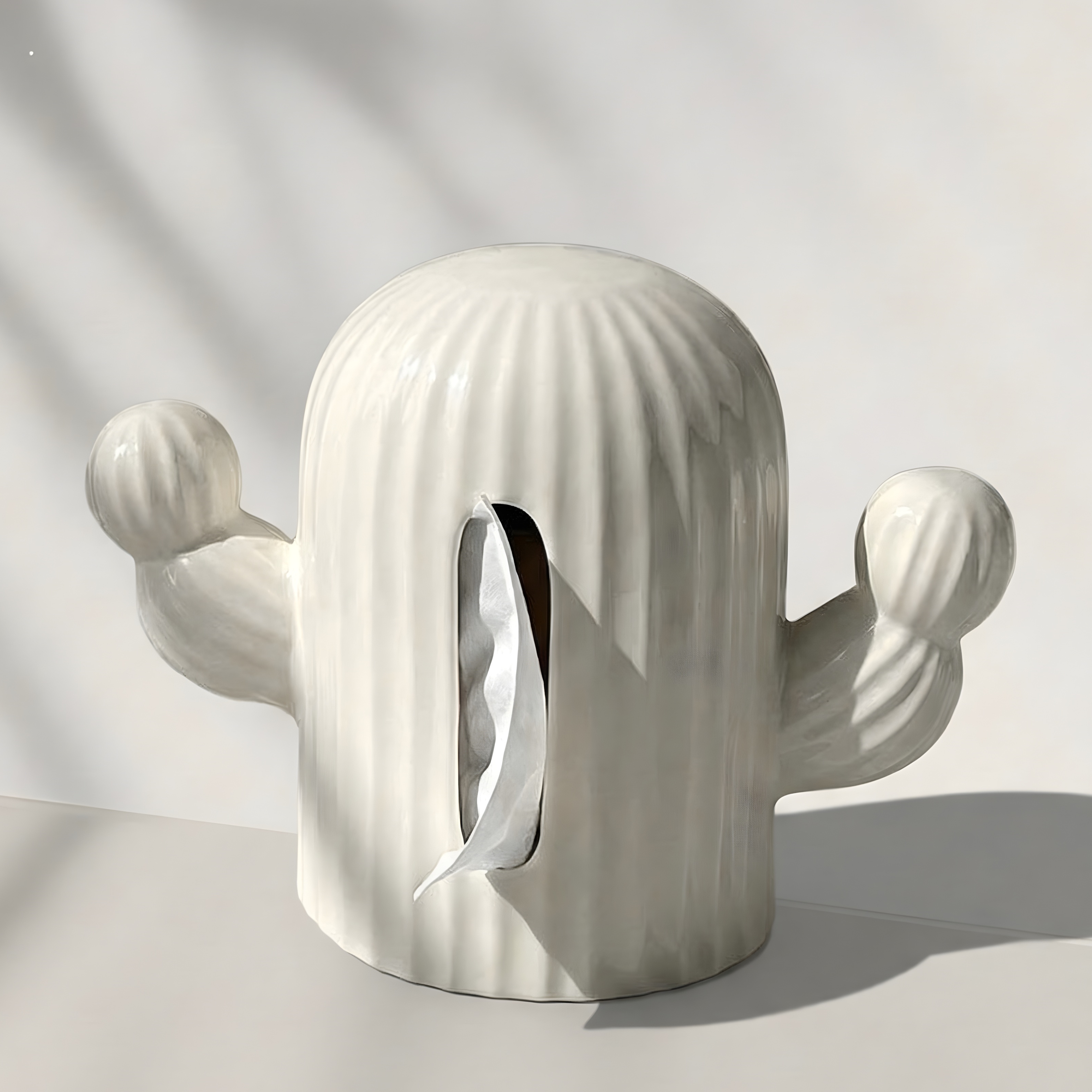 Inspired by the playful silhouette of a cactus, this piece reimagines a functional object through a sculptural lens. The rounded form and subtle protruding arms give it a bold yet refined character, turning a tissue holder into a contemporary decorative accent.